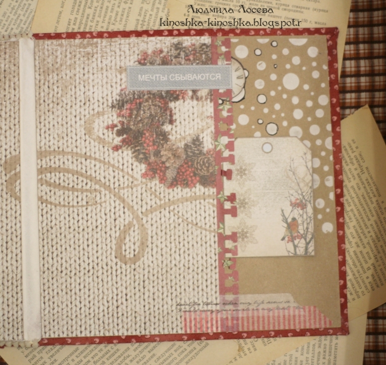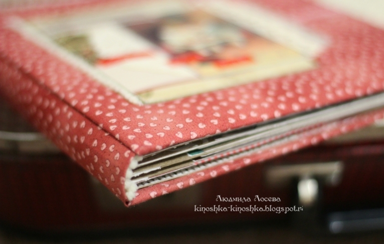 Формат 20*20, в этом альбомчике впервые сделала тканевый переплёт - мне понравился.