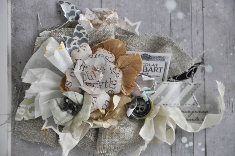 Здесь есть цветы из крафта, разной скрап-бумаги, тонированной офисной бумаги и тишью)