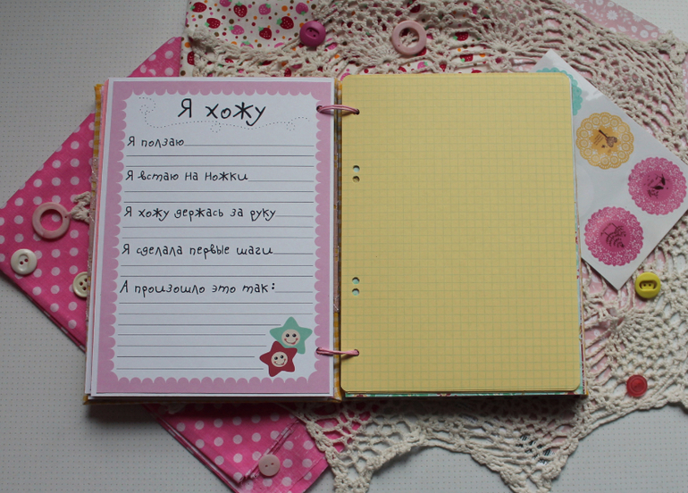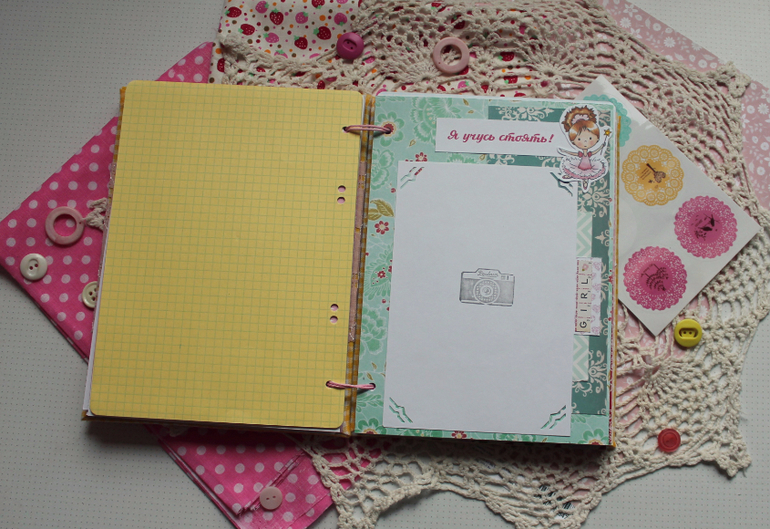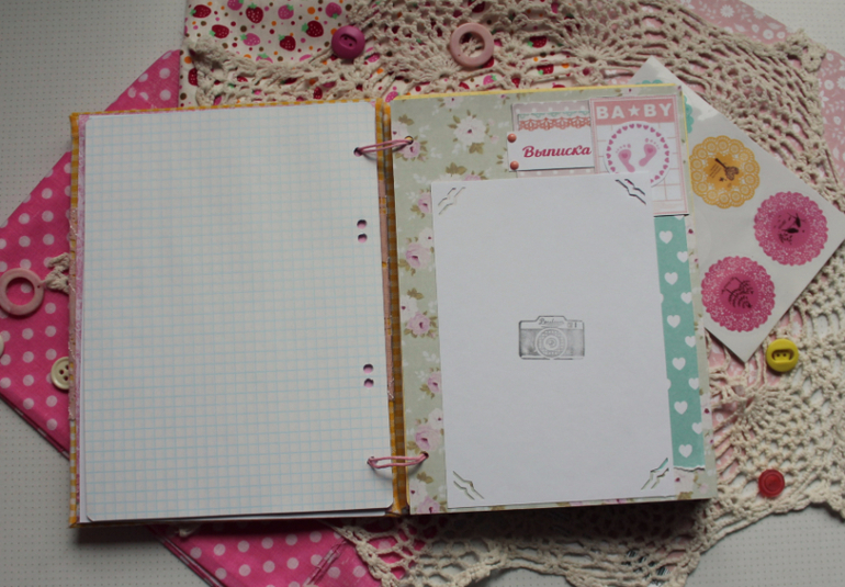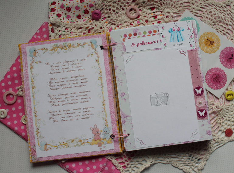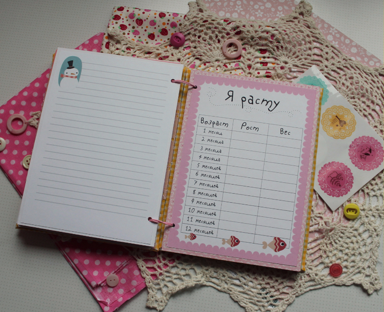 БлокнотыПривет,девочки . Вчера закончила очередной заказ: альбомо-блокнот для крошки -малышки Алиночки . Все как обычно :многофото/карточки достижений и успехов /листы для ведения записей мамочкой. Стихотворение на первом форзаце и два кармашка -для бирочки и фото УЗИ -на втором .