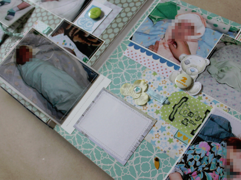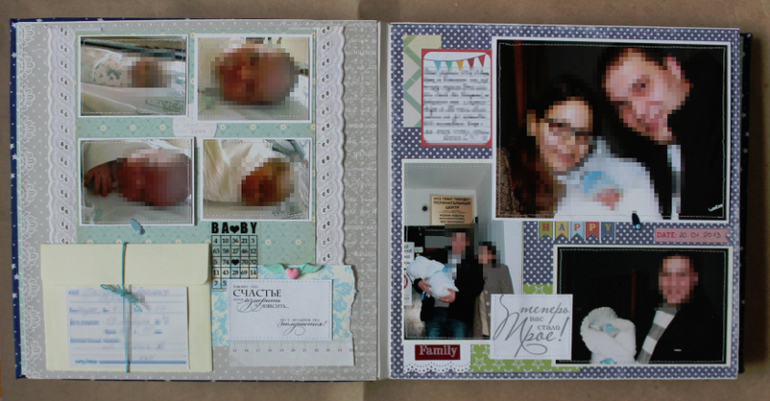 а это страничка о Крещении сыночка, здесь как раскладушку использовала свидетельство о крещении