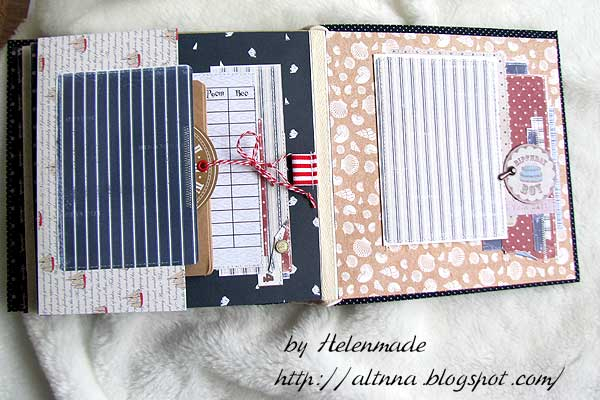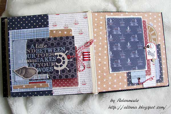 Спасибо. В этом альбоме использовано два вида бумаги:Authentique — Anchored и Maja Design — Life by the Sea.