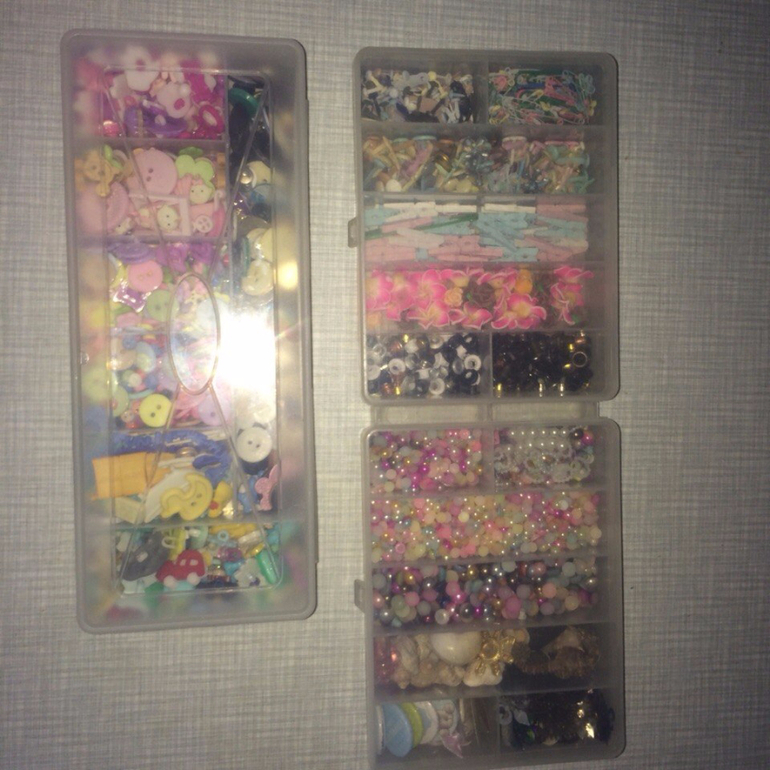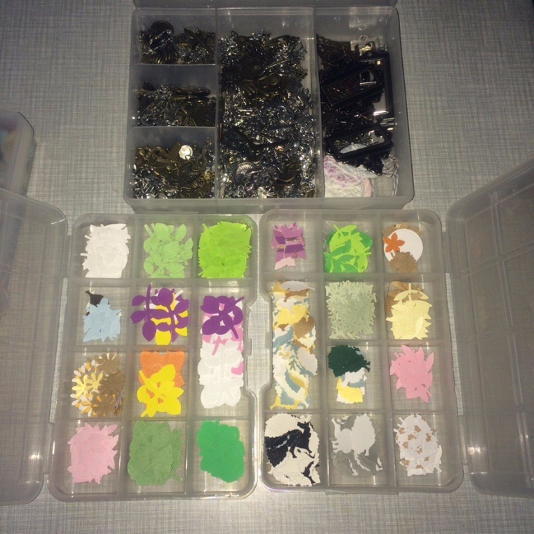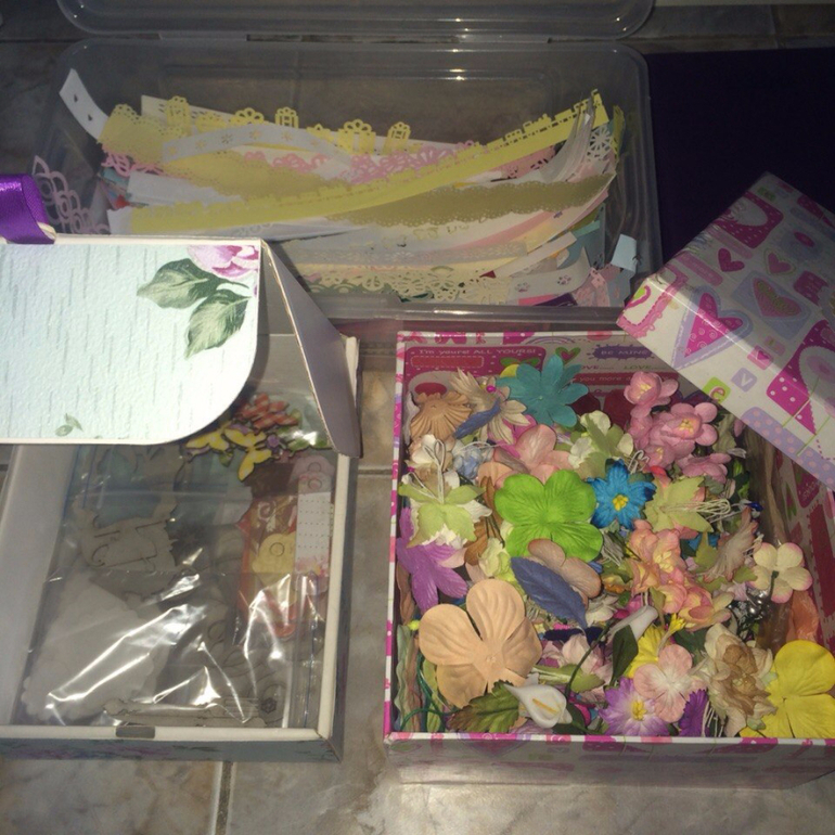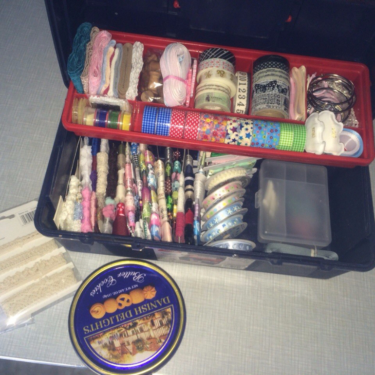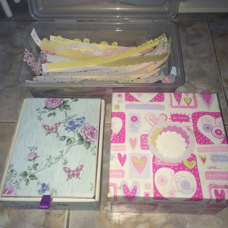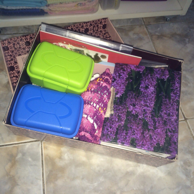 Ящики. Один с инструментами, второй с лентами/кружевом, скотчем ,всякой мелочью.