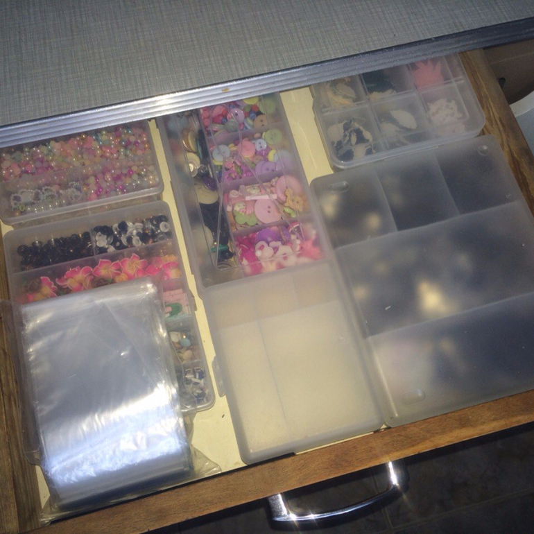 В столе у меня имеется выдвижной ящичек, там мелочевка: