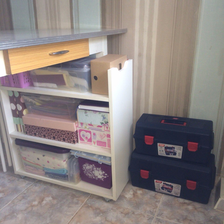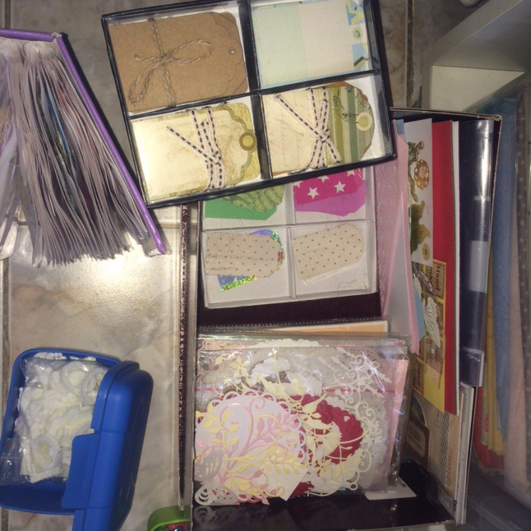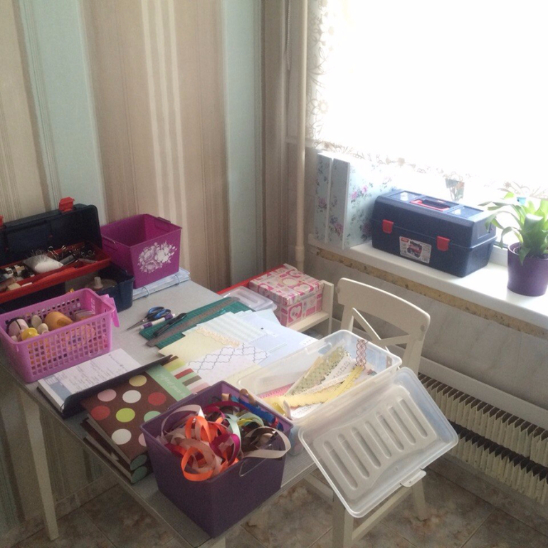 Все (почти все, постоянно используемые) богатства у меня спрятаны в 2 ящиках строительных ((?) это муж постарался, у них на работе такие используются под инструменты и под болтики, вот эти он "списал" спешел фор ми) + стеллаж, имеющий 3 полочки и колесики для легкого выдвигания (мадэ ин ИКЕА, детская мебель) + подоконник с внешней и внутренней стороны кухонного окна (а за окном лоджия...). Вру, еще у меня нарезанный картон всех мастей и размеров, переплетный и пивной, а также обрезки от диз.картона для вырубки, сам товарищ бигшот хранится в нижнем ящике комода в спальне, оттуда выгребаю то что нужно в момент когда нужно. Ну и еще самый большой чемодан с бумажными украшалками (там в основном наклейки, которыми я не пользуюсь увы...) вообще стоит где-то на лоджии.