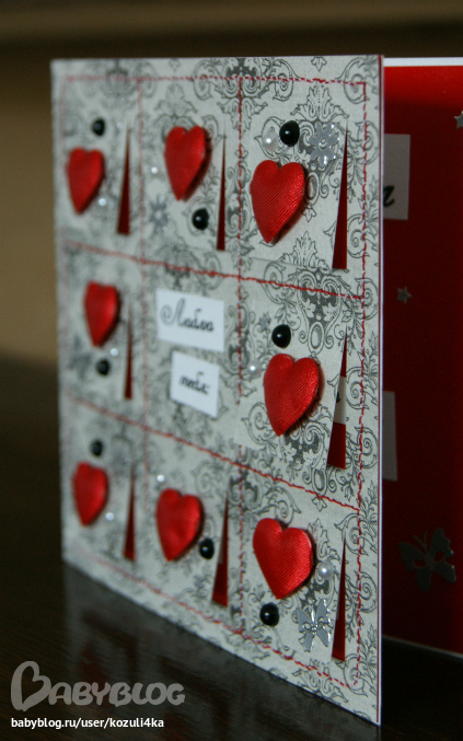 Класс, всё очень понравилось! А особенно "8 любовных признаний"... очень будоражит... ))) Твоя валентинка для мужа вышла милой, нежной, теплой и очень индивидуальной. Вот уж, действительно, ни у кого такой не будет больше! ))))