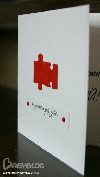 Открытки, приглашения, визиткивалентинка "мы доплняем друг друга"
