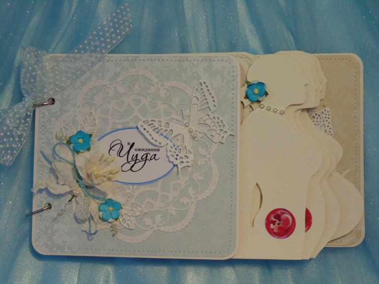 Заказали мне еще один "беременный" альбомчик с растущим животиком. Почему-то везет мне на такие альбомы))). Животик растет вместе с мамочкой и малыш в животике тоже (малыша подглядела у Маши, за что ей огромное спасибо).