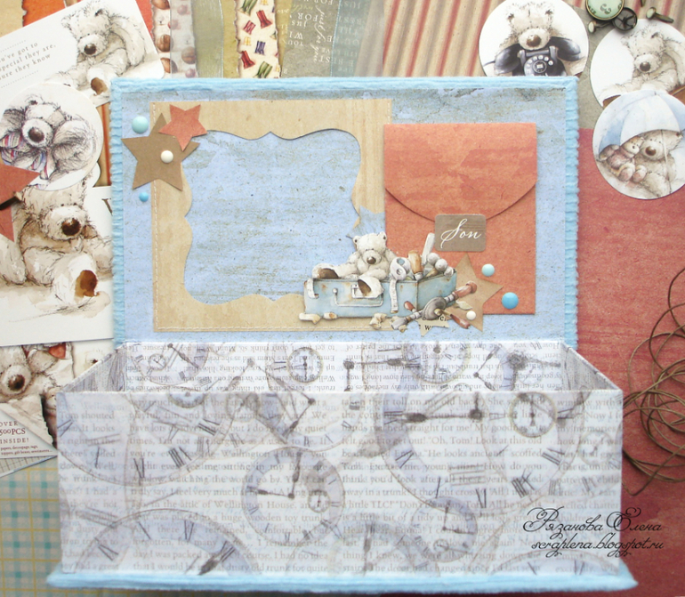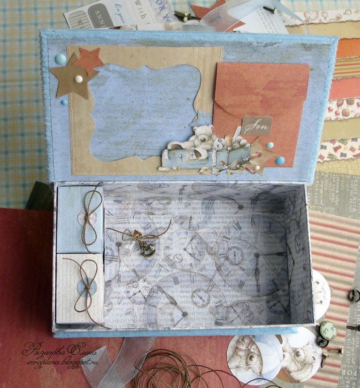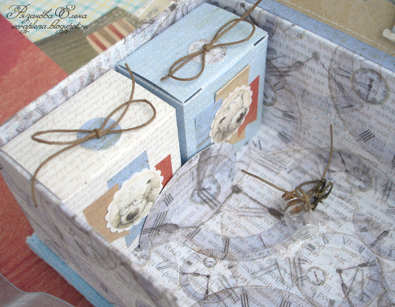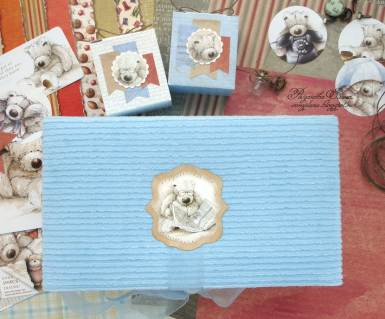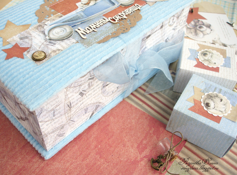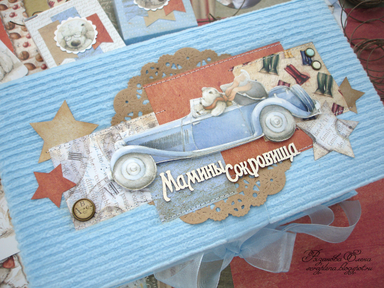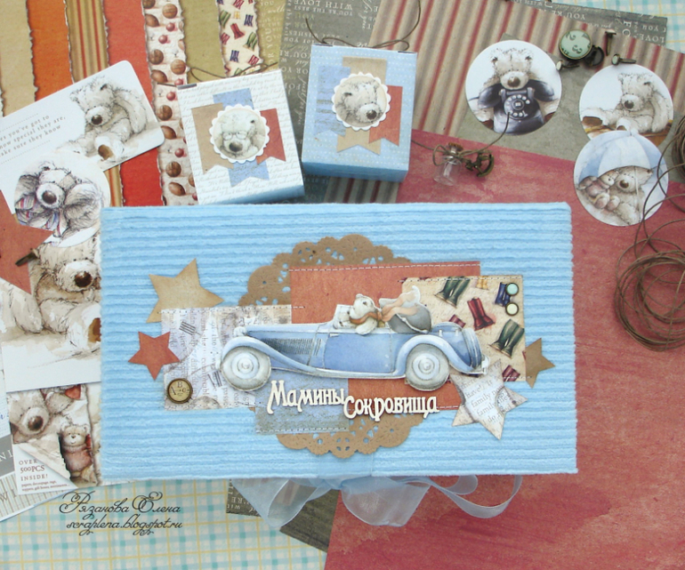 Красотень! Нравится мне твоя концепция сокровищ! Не люблю когда под каждую вещичку — подписанная коробочка. А у тебя так ненавязчиво, свобода выбора для мамы — что захочет и как захочет- так и уложит ) ну и мишка этот — моя любовь уже навеки )) ты видела мой альбом с ним? Я его наконец доделала, начинала то еще по твоему СП по агнешкиному альбому ;)