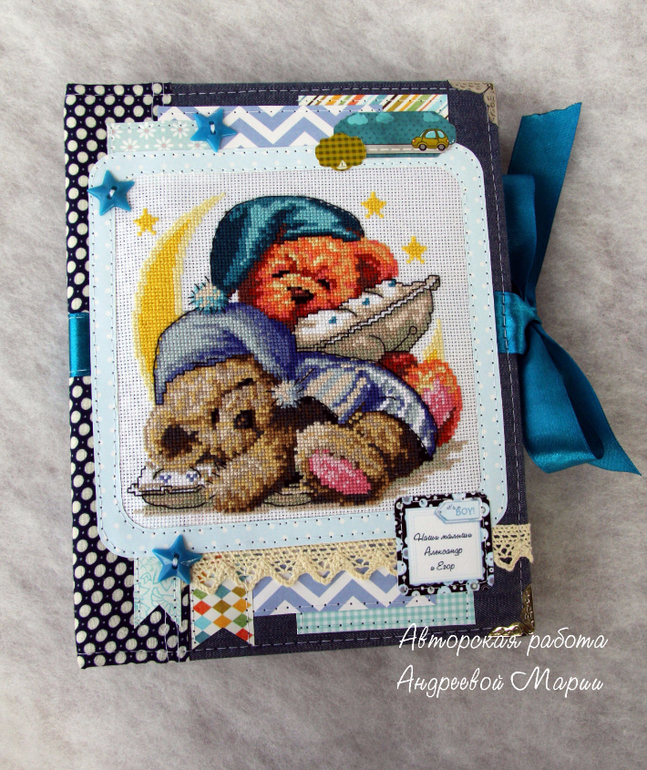 Альбомы ДетскиеЗакончила еще один заказик. Фотоальбом на 200 фото 10*15 см для близнецов Егора и Саши. Заказ отправлен в Москву. Размеры 20 на 23 см. Обложка хлопок+джинс, закрывается на ленточку. Внутри метрика, кармашки под бирочки, локоны и зубки малышей. А так же карман для тэгов с данными мальчиков. Надеюсь ребята обрадуются такому подарку)))) Желаю им здоровья и радовать маму)))) Спасибо Олесе за заказ. Подробности под катом.