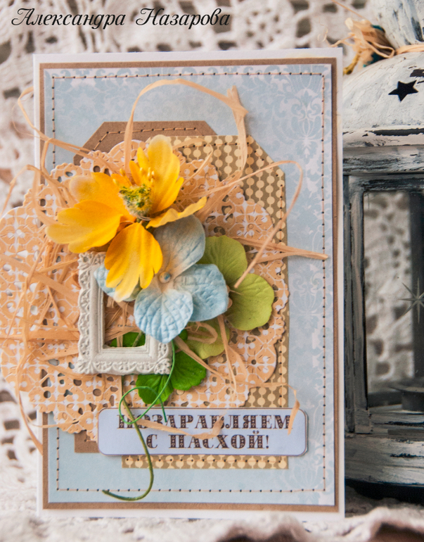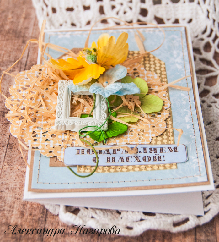 Первая открыточка получилась совершенно спонтанно - я не собиралась делать пасхальную открытку, но палитра в задание легла на бумагу и вуаля))