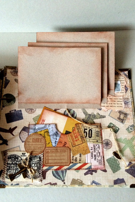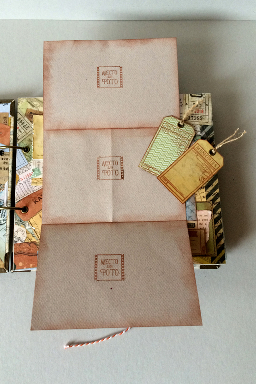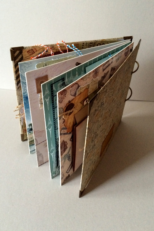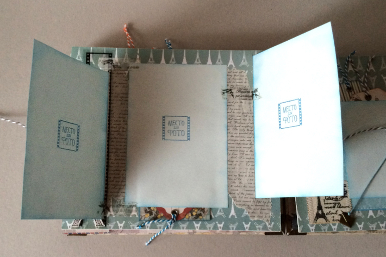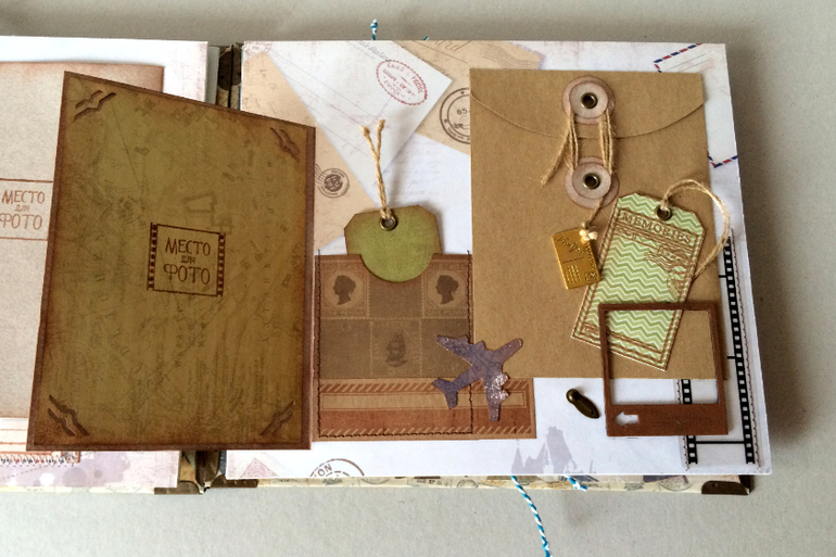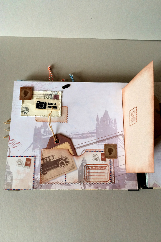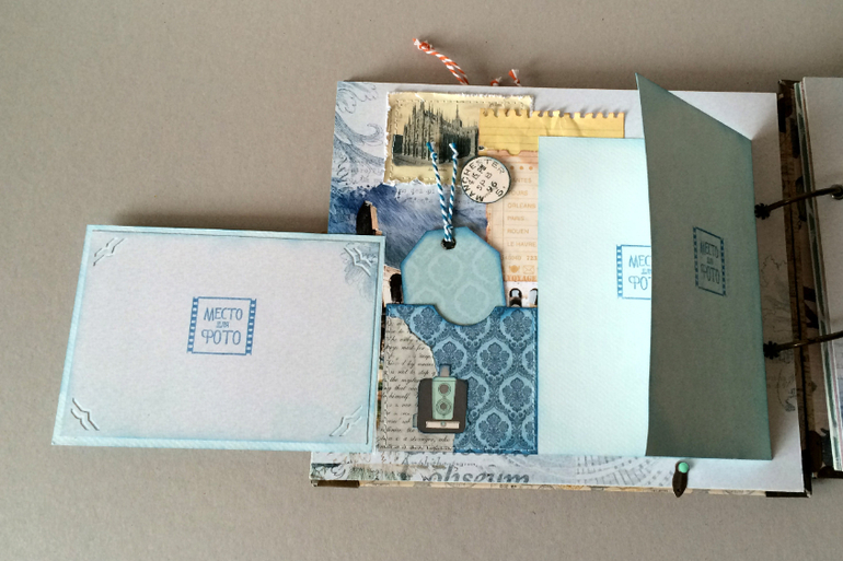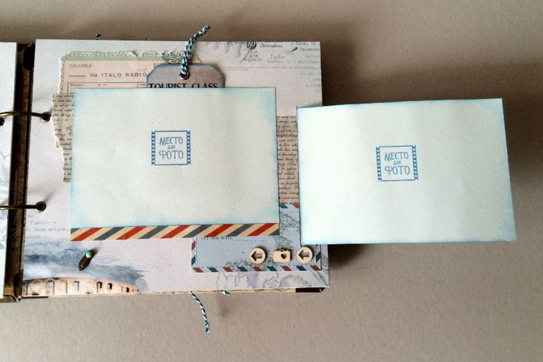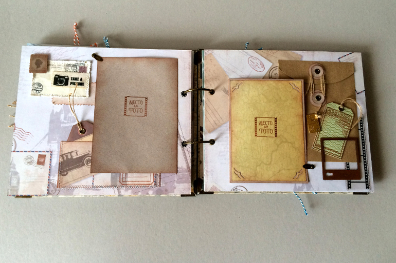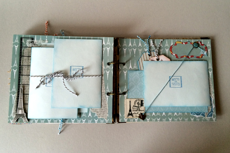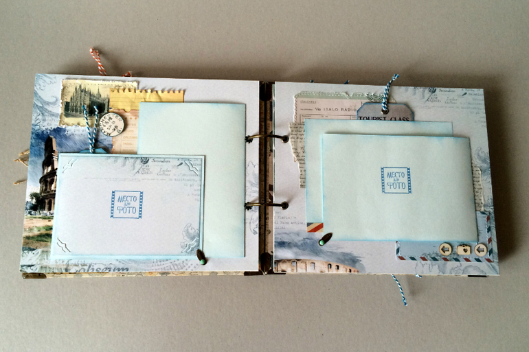 Альбомы про путешествияМоя заказчица задумала в подарок для своей подруги, любящей путешествовать - фотоальбом. Мы совместно остановились на том, что будет по одному развороту для разных стран - Италия, Англия, Франция и 2 разворота - нейтральных (не привязанных к определенной стране). По желанию заказчицы альбом на кольцах и в декоре нет приторности и слащавости.