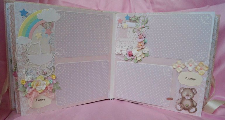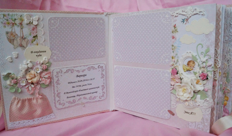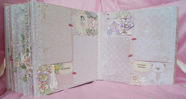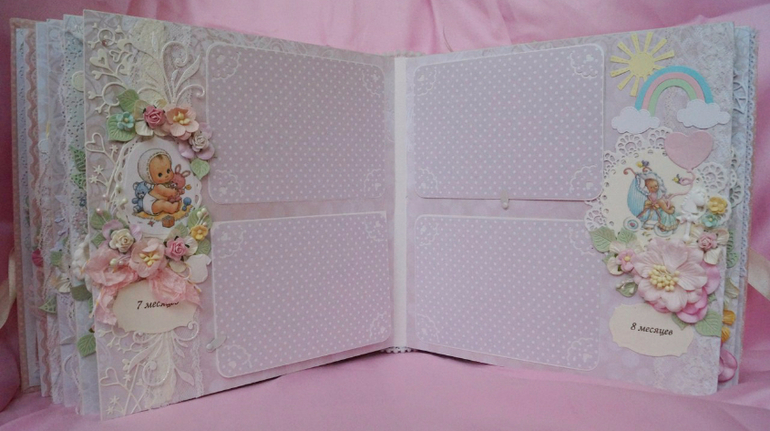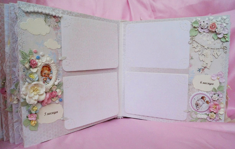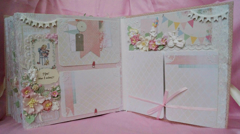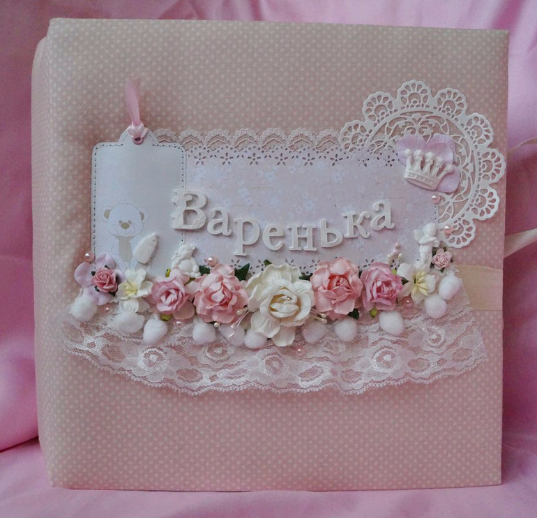 Альбомы ДетскиеВсем привет! Спешу поделиться с вами своим первым шебби альбомом для девочки)) Получился пухляш 25х25 на 9 разворотов, 85 фотографий 10х15, кармашек для бирочки, фото узи. Делала на одном дыхании с превеликим удовольствием!! Все эти кружавчики, бантики, цветочки, гипсовые фигурки (их в альбоме аж 50шт))))...... обожаю!!! Буду рада услышать ваше мнение)