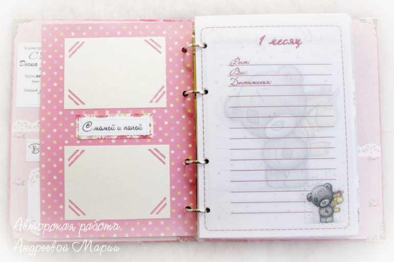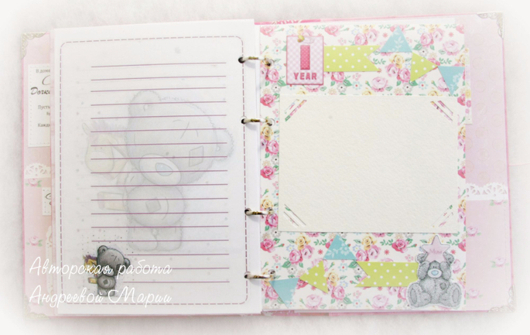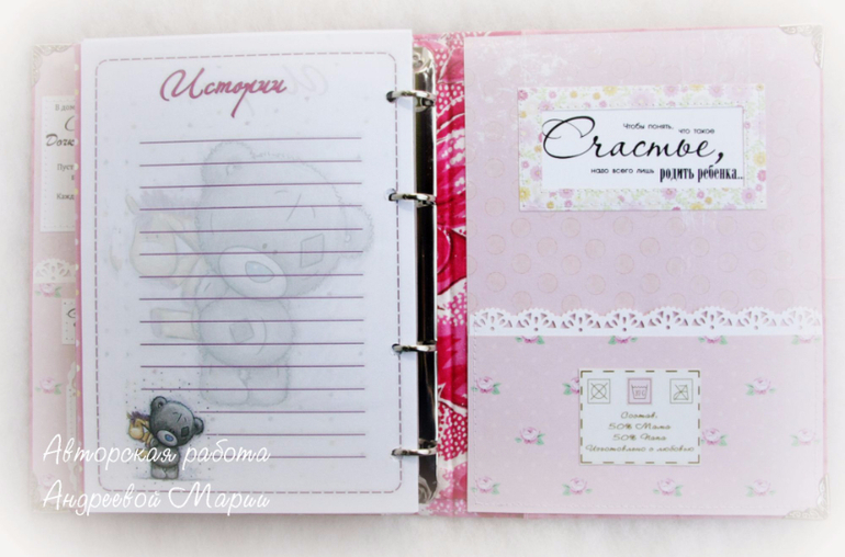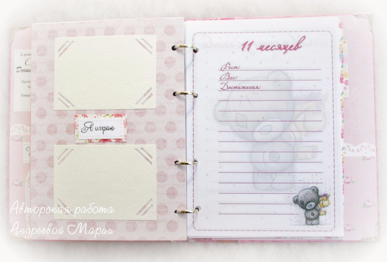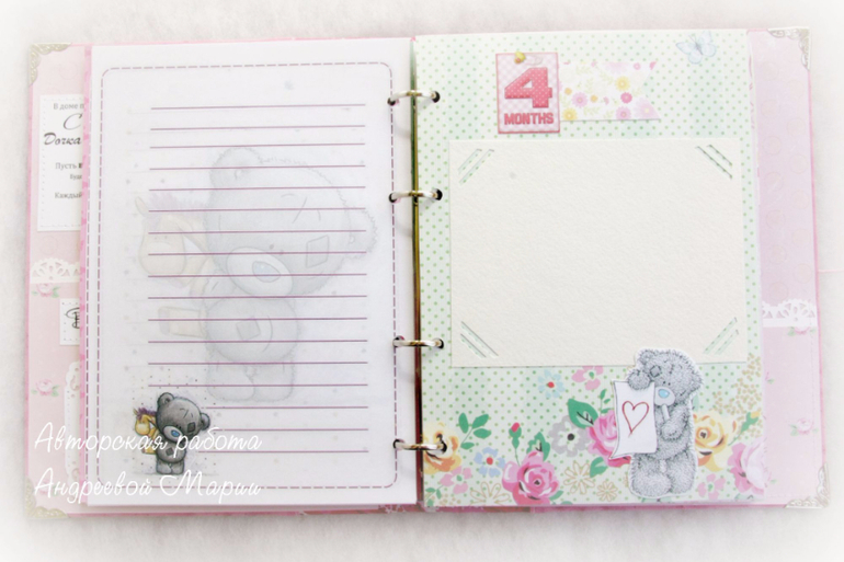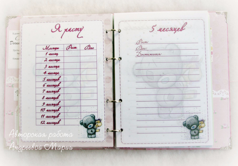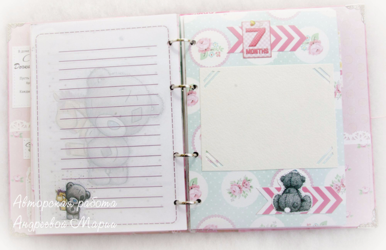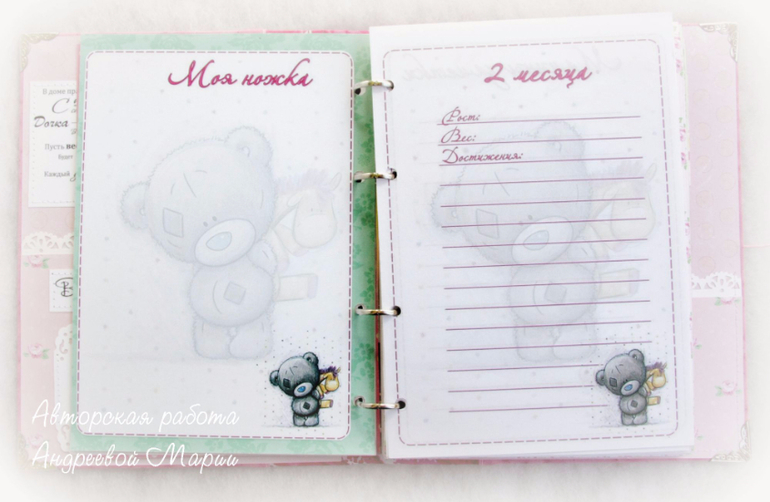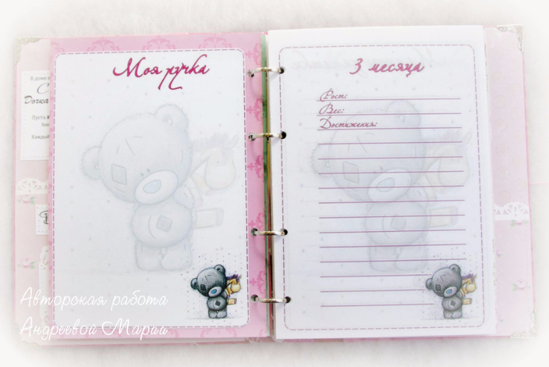 Заказчица выбрала странички с мишками Тедди, пришлось и оформление делать с ними. Результатом я довольна, она тоже)))) Блокнот получился очень миМИШНЫЙ.