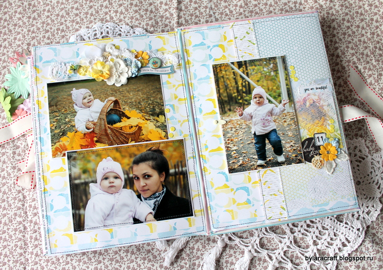 Еще очень очень хочу показать альбом для девочки! Сделан из бумаги и украшений Lemon Oul. Ой, девчат, я просто влюблена в их бумагу! И альбомчики такие классные из нее получаются! У меня получился вот такой яркий, позитивный альбом для девочки до 1 годика!