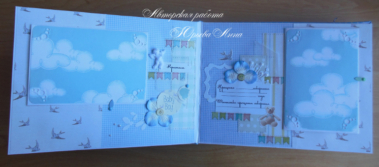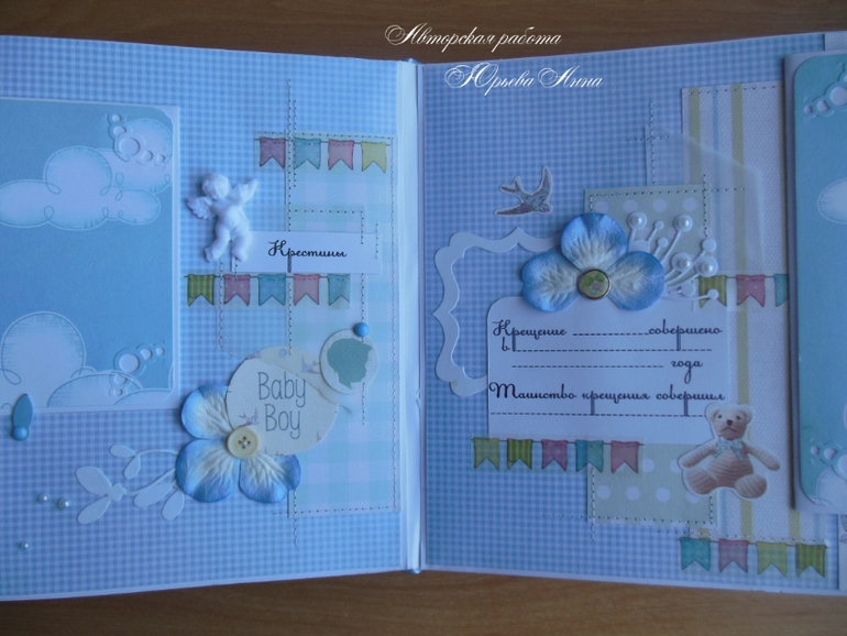 Альбомы ДетскиеЭтот альбом заказала моя знакомая для своего племянника. Единственным пожеланием было, что бы альбом был нежным. Месяц работы с перерывами на праздники и получился вот такой альбом.