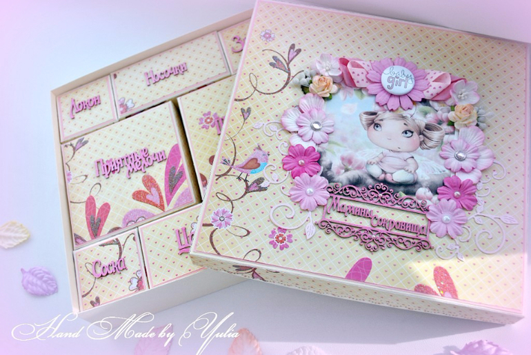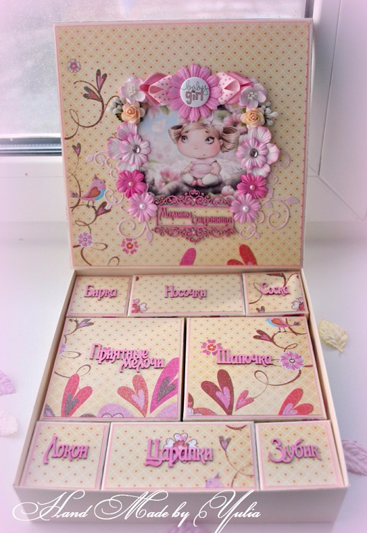 Коробки, шкатулки, комодыВот такая нежно-весенняя сотворилась у меня сокровищница которая теперь ищет себе хозяйку) Размер 21*21см, съемная крышка, на 8 коробочек. По желанию покупателя может дополнится метрикой, местом под фото УЗИ и конвертиком для теста, а так же карточками "Я расту", "Мои достижения" и т.п.