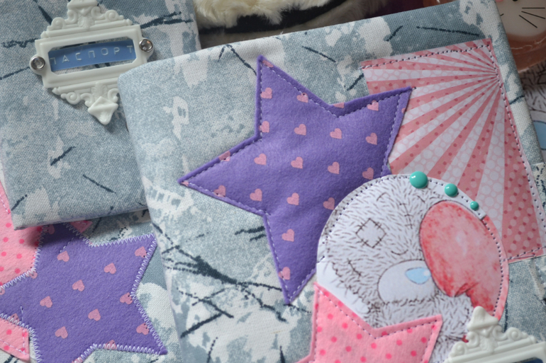Сначала задумывался один блокнот- но в процессе появления на свет -ему стало скучно)))и сотворились еще Холдер и обложка на паспорт для юной девушки))которая любит тедди