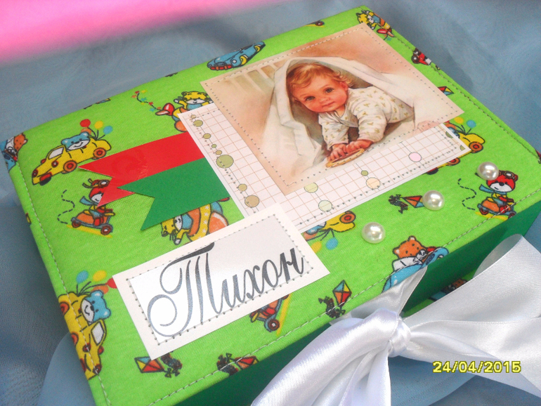 Своей подруге ко дню рождения её сына Тихона я сделала вот такую сокровищницу. Получилась она очень яркая и насыщенная.