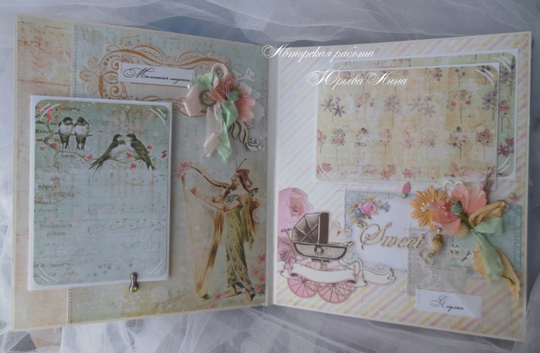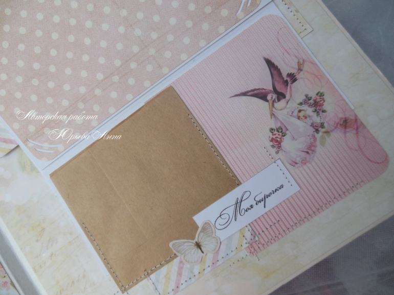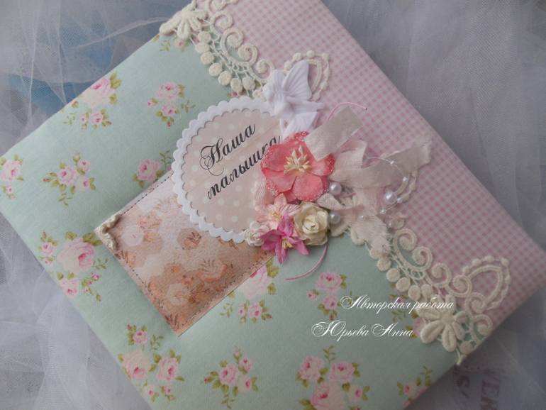 Альбомы ДетскиеЭтот альбом делался на подарок родителям малышки, и поскольку альбом уже вручен адресату, решила его показать вам. Альбом для девочки , размер 22х26см, 12 страниц, и вмещает альбом 49 фотографий на подложках, и дополнительные фотографии можно поместить в карман на последней странице.