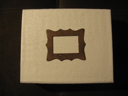 На крышке рамка, затонированная в тон донышкам и покрытая глиттером. В дальнейшем в рамочке появилась надпись с именем одариваемой. Именно эта рамочка мне не очень нравится, но из всех предложенных вариантов, именно это выбрала заказчица