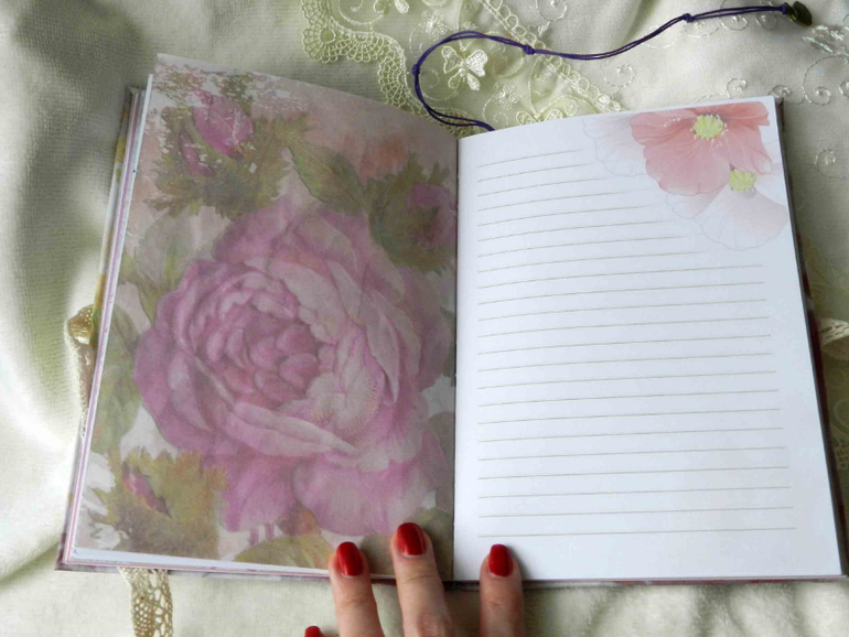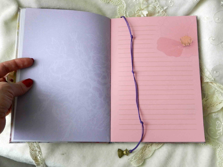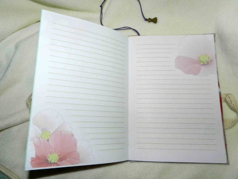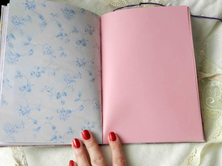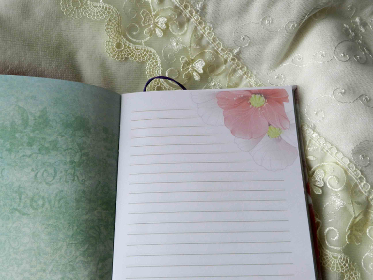 Содержит 50 листиков(100 страниц). Разные странички: белые, розовые, чистые и линованные с принтом. Для девочки же))