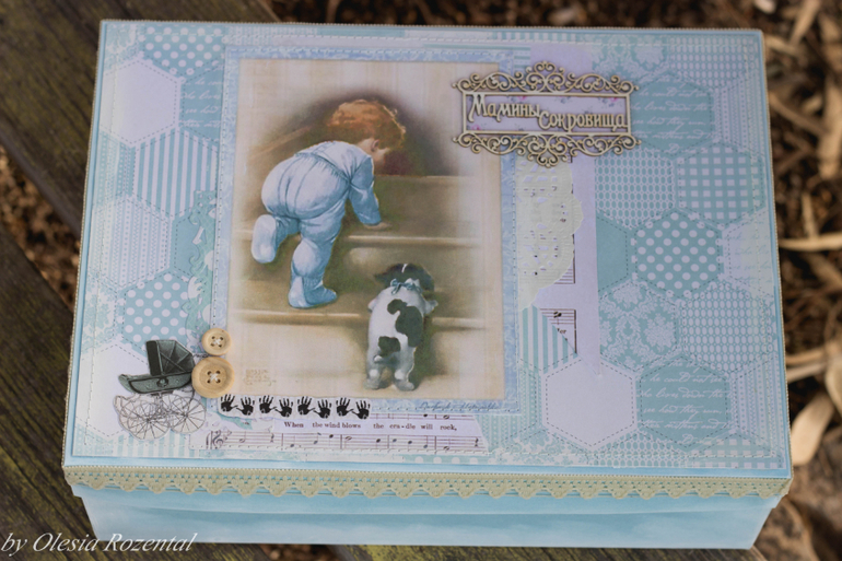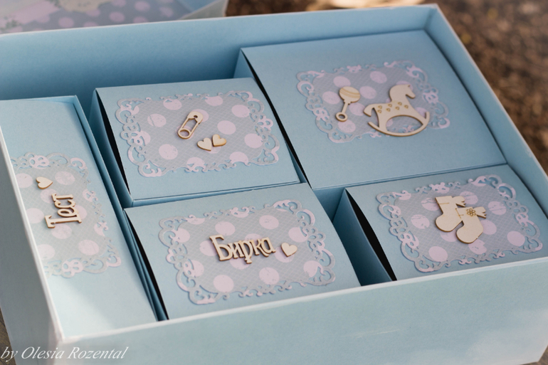 мамочка активно участвовала в выборе материалов для создания работ,так что у нас был творческий тандем =) Коробочки были не стандартных размеров,каждую измеряли индивидуально