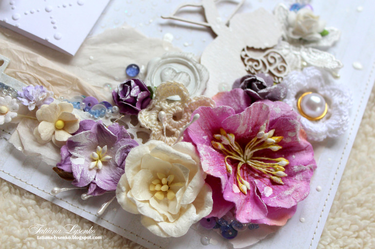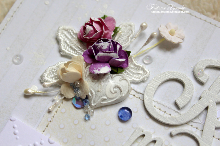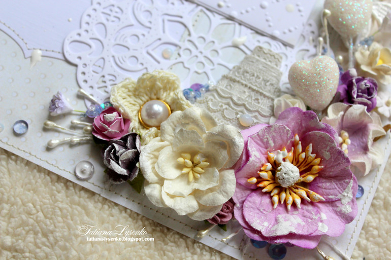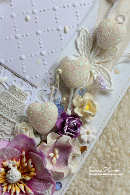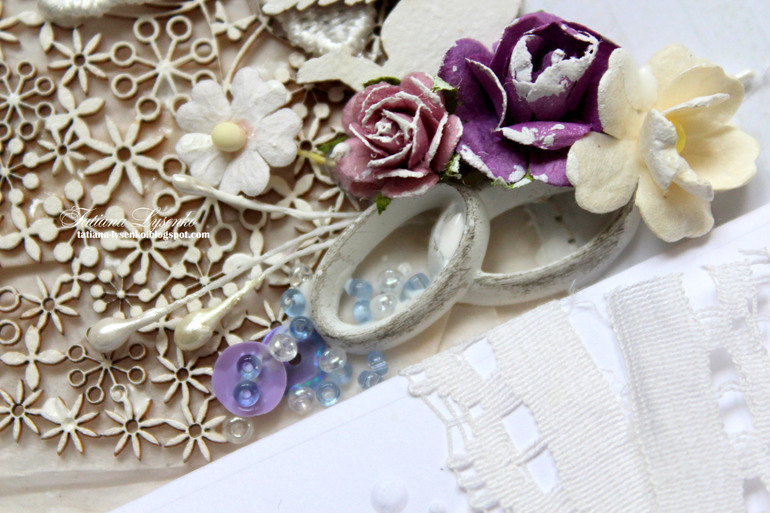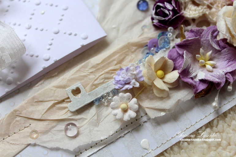 Альбом я хочу сделать белым-белым и акцентом в нем будет лишь цвет свадебного декора - сиреневые оттенки. Именно таким должен быть свадебный альбом в моем понимании. Невесомым, нежным, воздушным и белоснежным. Поскольку фото у меня нет, а бумаги много я не покупала для этого альбома (у меня ведь должны были быть фото), я придумала выход для подложек - папки для тиснения :) В посте с заданием к первому этапу я оставила фото с разворотом целиком и не стала перегружать ленту комментариев деталями...по-этому выкладываю их здесь. Погода сегодня у нас пасмурная, по-этому фото немного серые...