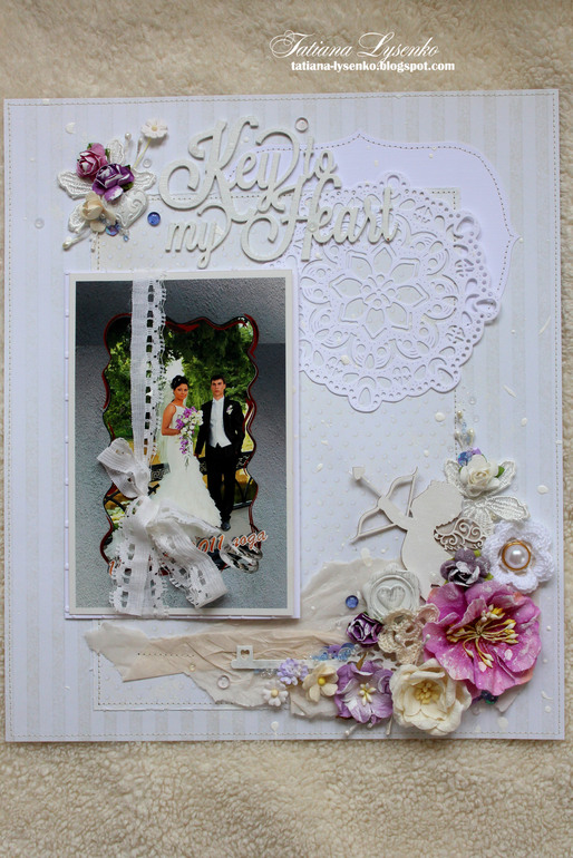 Спешу показать первый разворот сделанный по СП от Kaidy посвященный свадебному альбому. Я уже очень давно обещала сделать и поделиться с вами своим первым, большим свадебным альбомом, который заказала мне моя тетя. Но, поскольку фото мне до сих пор не предоставили, а абсолютно все для создания этого альбома уже давно готово, я решила принять участие в этом СП, который будет мне хорошим пендалем ;)))