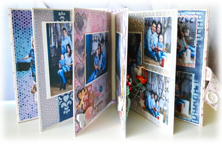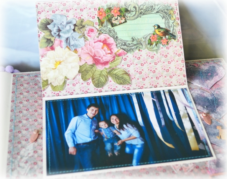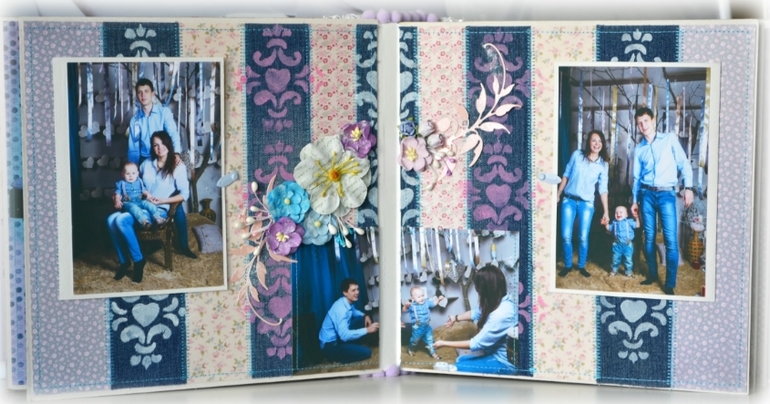 Альбомы СемейныеПоступил мне заказ оформить семейную фотосессию. Глядя на фото, стразу пришла мысль использовать в работе джинс. Но что именно я хочу видеть в итоге, никак не складывалось в голове. И вот после очередного стопятьсоттысячного просмотра этих фоток и нескольких бессоных ночей, я созрела))) Я точно знала, что хочу совместить нежность Тильды, кружев, шитья и цветов с "грубой" джинсовой тканью. Да-да, именно тканью!!! Ну и потом добавились картинки с акрилом, разными красками, спреями, трафаретами....Вообщем "Остапа понесло"! Скажу честно, результатом я довольна. Получился необычный альбомчик. И визуально и тактильно. Смотрим?