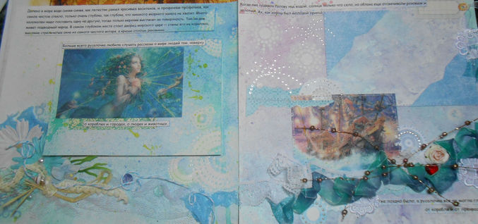 Как только проект стартовал я надумала делать альбом про "Алису в стране чудес", даже иллюстрации скачала и любимые цитаты выбрала. Но ночью, лежа в постели и думая каким он будет мой первый разворот про Алису, я почему-то решила делать альбом про "Русалочку" Андерсона ). Так и родилась идея создания "морского" альбома про мечты, любовь и про цену, которую нужно заплатить за свои самые заветный желания.