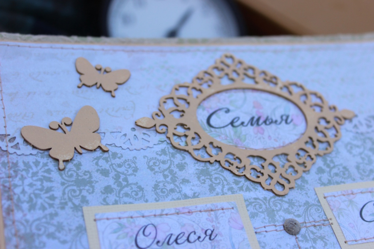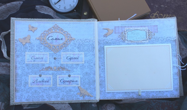 Для меня, как человека специализирующегося пока только на детских папочках, был очень важен этот заказ - это была большая ответственность, ведь это второй (на мой взгляд качественный) альбом который я "творила" (экспериментировала я сначала с детским). А семья необычна (для меня) тем, что глава семейства - священнослужитель. Этот факт еще больше возлагал на меня ответственность.