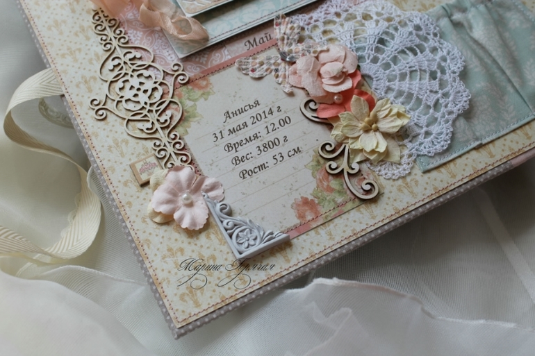 Еще одна особенность этого альбома- это разбивка по месяцам, начиная с мая, - месяца рождения малышки, и им же заканчивая.