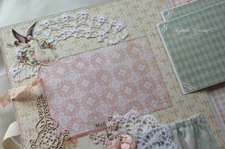 Бумага эта с историей. Вот кое-что из описания к ней, позаимствованного с сайта скрап-магазина : "Это ремикс самой первой коллекции Graphic 45 - Baby 2 Bride, которая сделала бренд Graphic 45 таким популярным и узнаваемым. Коллекция была давно снята с производства (в рамках стандартной политики Graphic 45, старые коллекции не переиздаются), но благодаря невероятно высокой популярности и востребованности уникальных дизайнов (идеальных для детских и свадебных работ), была все-таки переиздана."