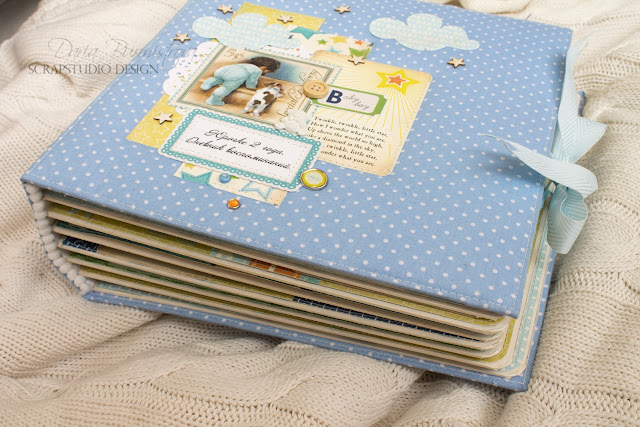 Мальчуковые заказы были крайне редкими, посему у меня практически и не было в запасах ни бумаги ни ткани на соответствующую тему. И вот за неделю до этого Нового Года мне пишет моя бывшая заказчица-ее близкой подруге срочно нужен альбом на крещение сына! Срочнее не бывает)) Ну я человек добрый, муж все равно в праздники вечно работает-я и взялась...Даже 31го до обеда сидела за работой. И вот результат: с нового года 90% моих альбомов для мальчиков!!! Вот хотите верьте-хотите нет, но примета работает!!! А я судорожно скупаю ткани голубых расцветок))