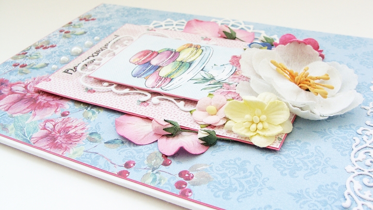 Эта стандартного размера 10х15 см. Практически все материалы Скрапберриз + вырубка и тайские цветочки