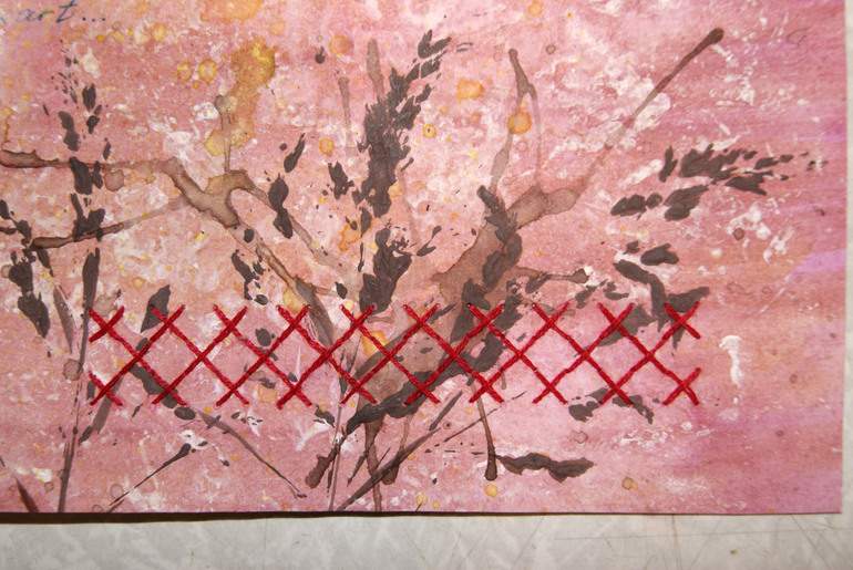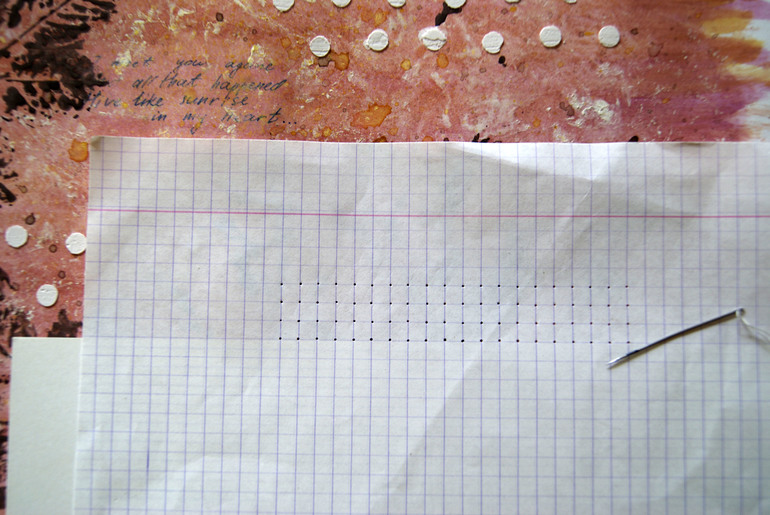 последний штрих - вышивка крестиком. Сначала сделала разметку
