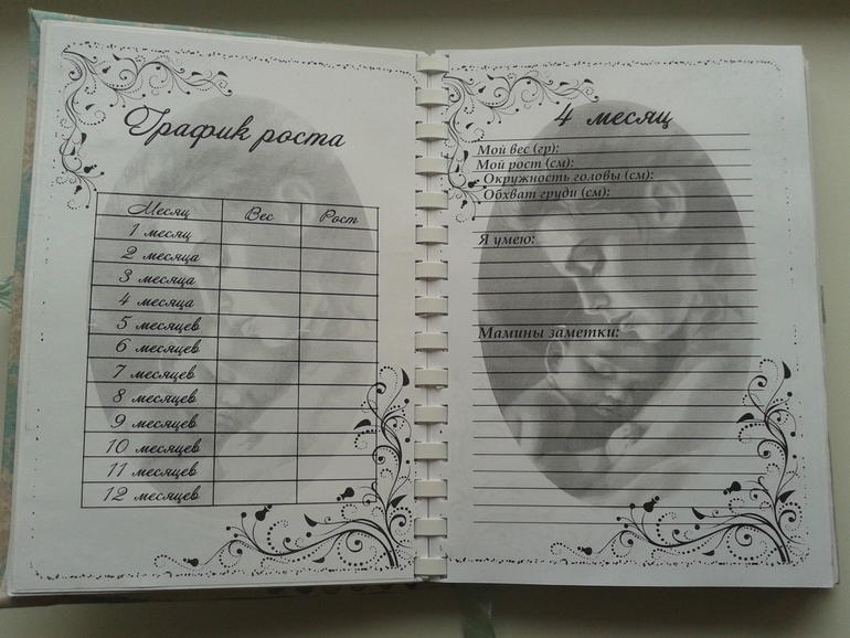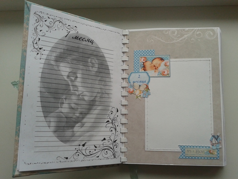 В блокноте есть 12 разделителей по месяцам с местом для фото и для записи достижений малыша, роста, веса, прорезывания зубиков и т.д. Идеи разделителей подсмотрела у Дарьи Бурмистровой (надеюсь, она не против!!!); Очень уж мне понравилась эта коллекция бумаги. Я в нее просто влюбилась)))