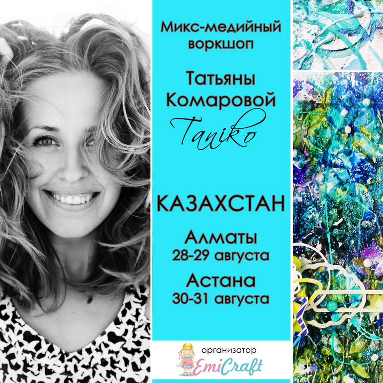 В последние выходные августа я еду в Казахстан с микс-медийными воркшопами. Программа очень насыщенная: 2 города, 4 дня, 6 мастер-классов! Написать, что вас ждет фееричный красочный взрыв, руки тянутся сами...но я этого делать не буду, потому как вы это и так знаете!)))) ...или все же написать?)))) гидрокостюм предусмотрен каждому))) шучу-шучу))