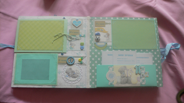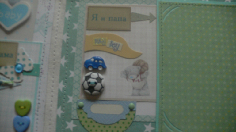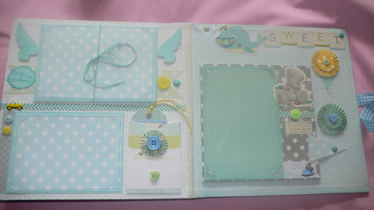 Альбомы ДетскиеПривет,девочки. Заказали: "легкий", не назячивый альбомчик мальчуковый..Все бы ничего,с легкостью начала. Но соседи этажом выше ,затопили весь стояк до первого этажа.Представьте, что творилось у меня если они на 5,а я на 4(((Проводке в квартире полный капец,все стены потолки и мебель,о них даже страшно говорить. (Но я, доскрапила альбом. пусть и с приключениями,и конечно в этой нервотрепке и закосячила фиолетовый разворот..И пуговки забыла пришить.(а для меня это подобно смерти)Остались просто приклеенными и не прошитыми..)))И вклеила его в переплет,и потом только вспомнила,про пуовки. И его залило чуток этот переплет..Как раз на работе с ним,все и случилось. Пришлось выкручиваться,чернилить.(( Еще и фотик,не пойму, что с ним..Но видно пока таскали вещи спасали..Что- то я сбила и резкости нет..Настраивать его уже не стала..Уж простите за качество..Пока просто не до настроек фотика..(( Дома полный разгром(.Но заказчикам угодила полностью,оба супруга ,рады радешеньки ..Сказали ,что именно так и хотели.И косяков не заметили! Спасибо,всем за внимание!Критикуйте))