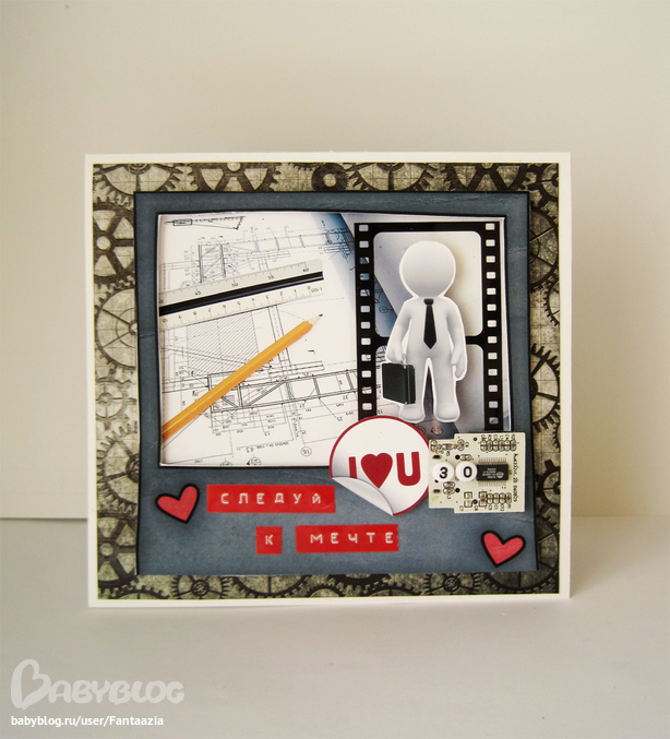 Очень необычная открытка! Очень индивидуальная! Сразу понятно, что для мужчины - инженера. Думаю юбиляру очень понравится - мужчины как правило гордятся своей профессией и достижениями в карьере )