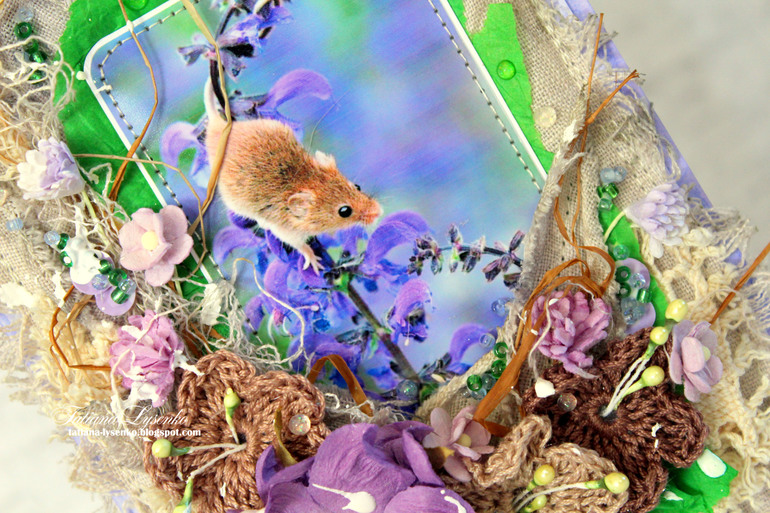 Формат 10/15. В основе тонированный хлопок. Кардсток окрашен акварелью в тон мышкиной среде :)