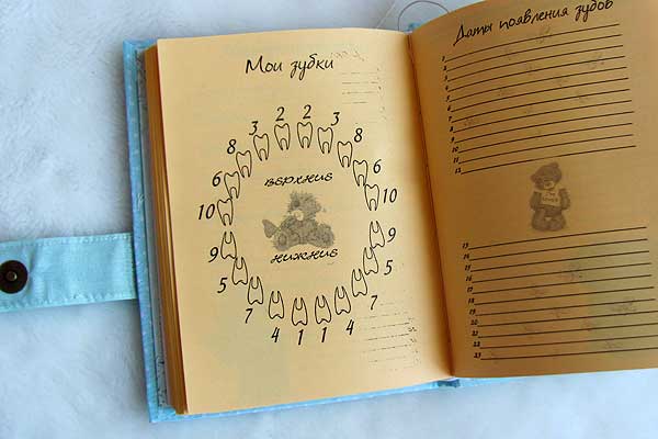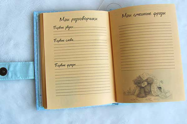 БлокнотыИ снова я. Покажу последнюю на сегодня работу. Для мамы маленького мальчика, которого зовут Марк. Формат А5, листы в линию с мишками и цитатами про деток. Есть таблички с графиком роста зубиков, данными развития, смешными фразами, а также места для отпечатков ручки и ножки малыша. На форзацах есть кармашки для бирочки и других мелочей и места для фото. Обложка обтянута качественным немецким хлопком, все детали декора пристрочены, застежка на магнитной кнопке, есть закладка.
