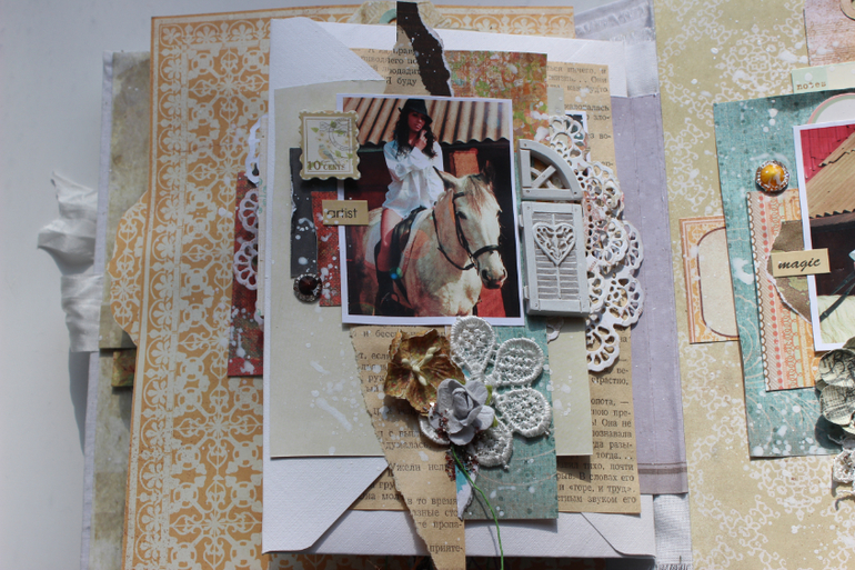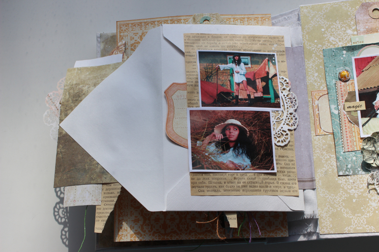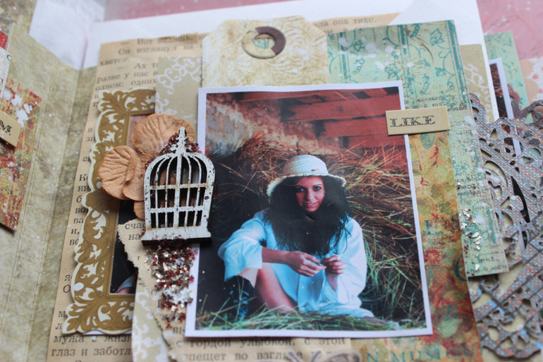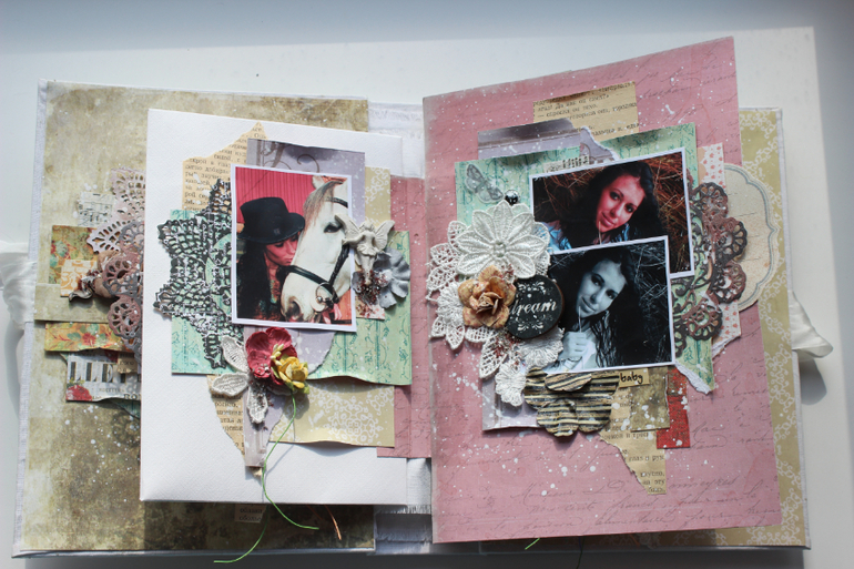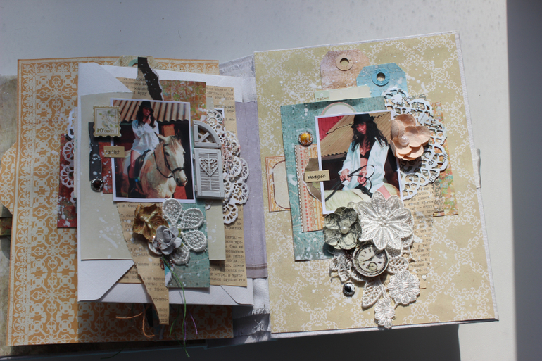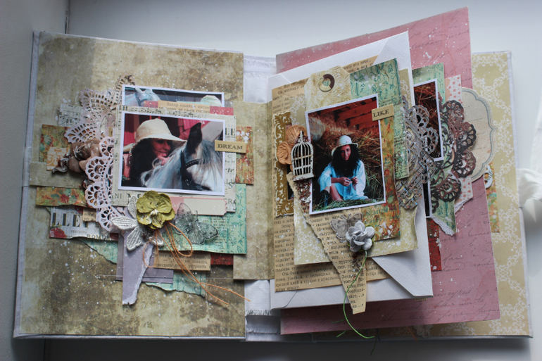 Альбомы для женщин (девушек)Здравствуйте, сообщники! К нам в нашу глубинку в середине июня приезжала с МК Елена Моргун и, как вы понимаете, я не могла пройти это событие стороной) На самом МК мы сделали переплёт, обложку и пять страничек. Хоть и трудились в поте лица (даже в туалет никто не ходил) осталось много домашнего задания. Собрав пакетик материалов и уложив кучу новых знаний в голове - отправились по домам - доводить до ума начатые альбомы. Очень понравились разноразмерные и разноматериальные странички - маленькие акриловые, средние странички-конверты, ну, и обычные странички никто не отменял))) Ну, и, собственно, итог моей работы по МК Многослойный альбом. Проходите - присаживайтесь - включаю диафильм))))