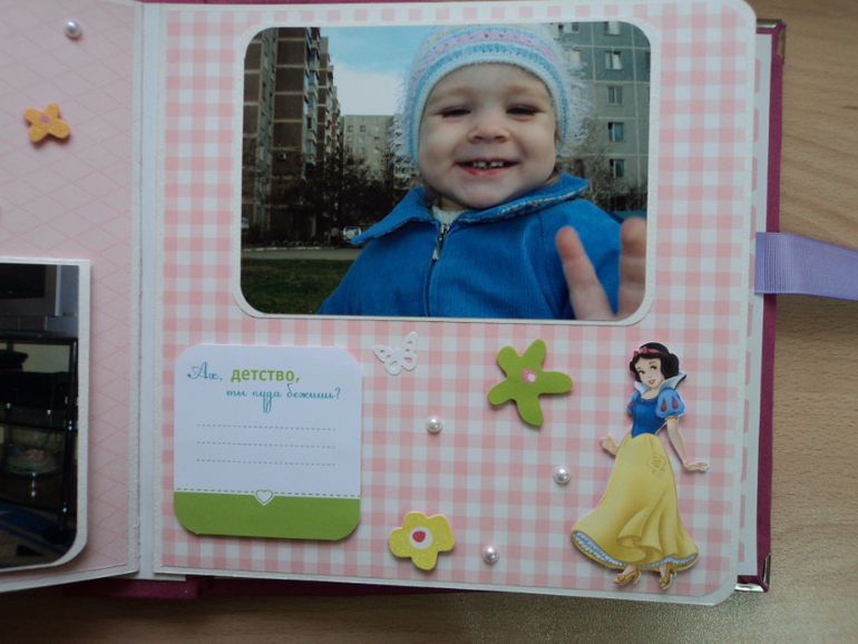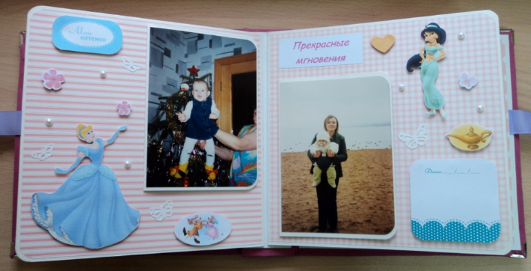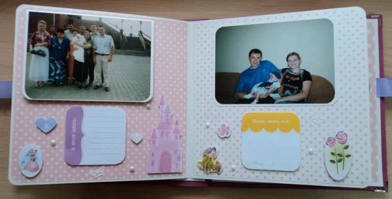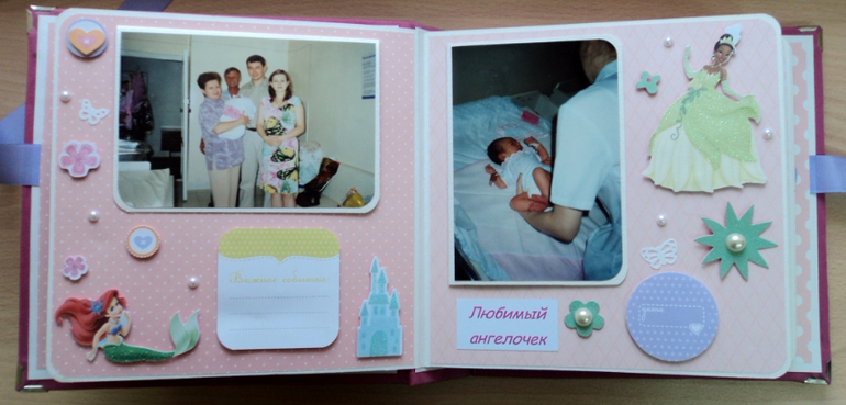 Альбомы ДетскиеАльбом для Софьи. Мягкая тканевая обложка, 8 разворотов, места для записей, табличка с данными при рождении, рост-вес и достижения. Сонечка очень любит Диснеевские мультики, поэтому главным украшением альбома стали принцессы из самых известных мультфильмов. Итак, смотрим)))