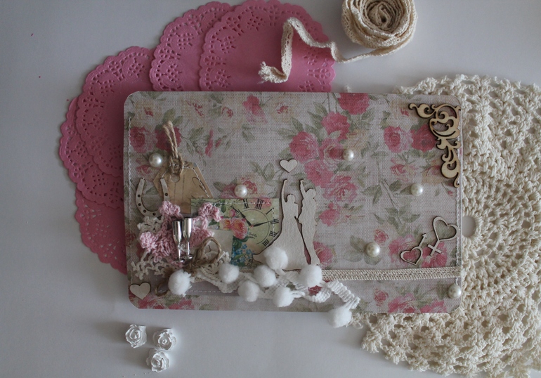 Большой подарочный конверт для денег,в который вложат еще 6 белых обычных конвертов с деньгами от шести семей в подарок молодоженам