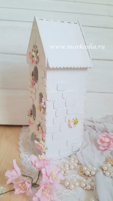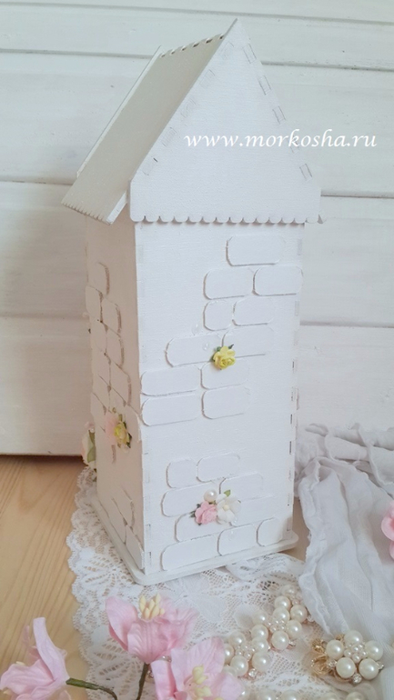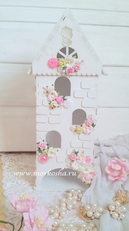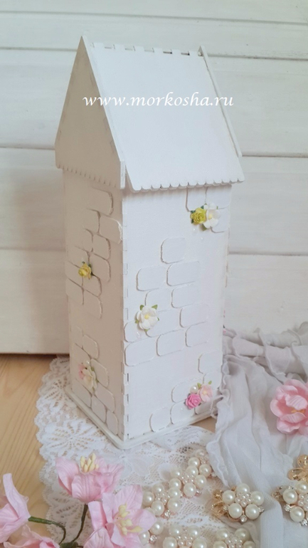Заскрапить можно ВСЁ! (альтерскрап)Нежный чайный домик, окрашенный акрилом и украшенный бумажными цветами, бусинами и брошами. В этом домике можно хранить как чайные пакетики, так и большой пакет с заваркой (крышка съемная).
