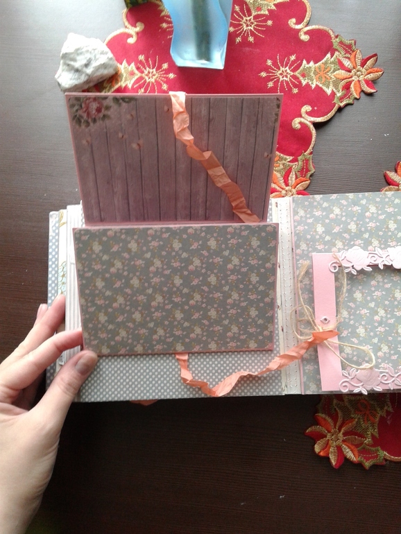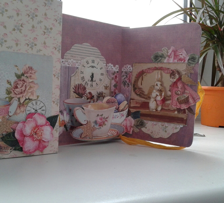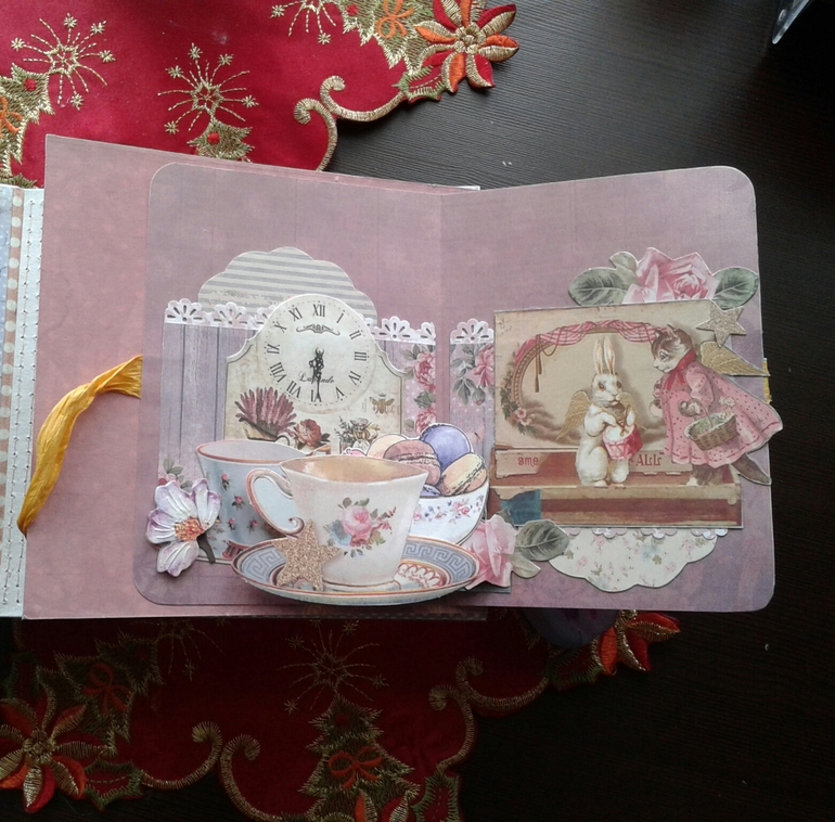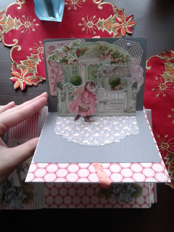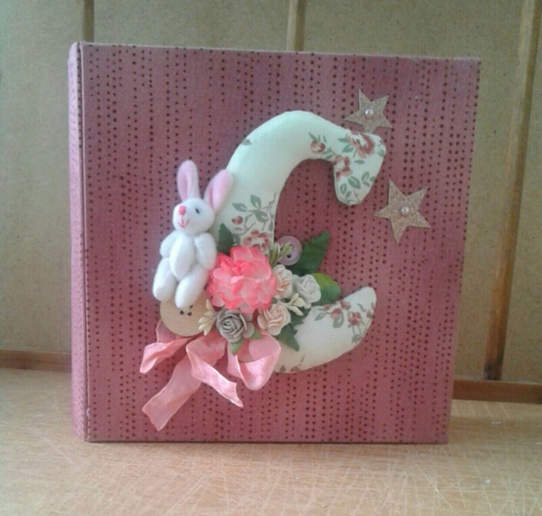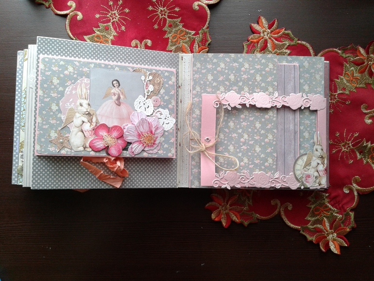 Малышку назвали София, и как то само собой придумалось поместить букву "С" на обложку. Альбом из набора Tilda. Первый раз работала с этой бумагой, пока не определилась понравилось или нет. Бесспорно качество бумаги и интересный дизайн, но цветовая гамма не моя, было немного трудно. Еще меня увлекла тема pop-up открыток, и вдохновившись панорамными альбомами девочек, поместила пару таких конструкций в этот альбом..Чудный заяц на обложке все не хотел фотографироваться , предательски бликовал на свету. Оббегала ввсю квартиру с альбомом.