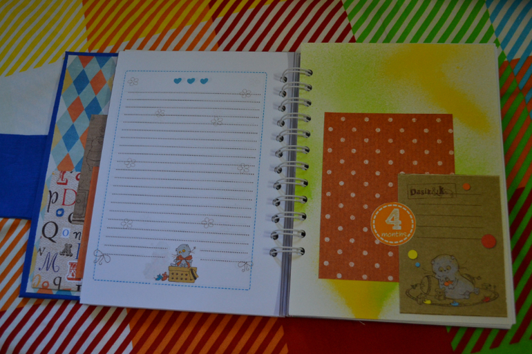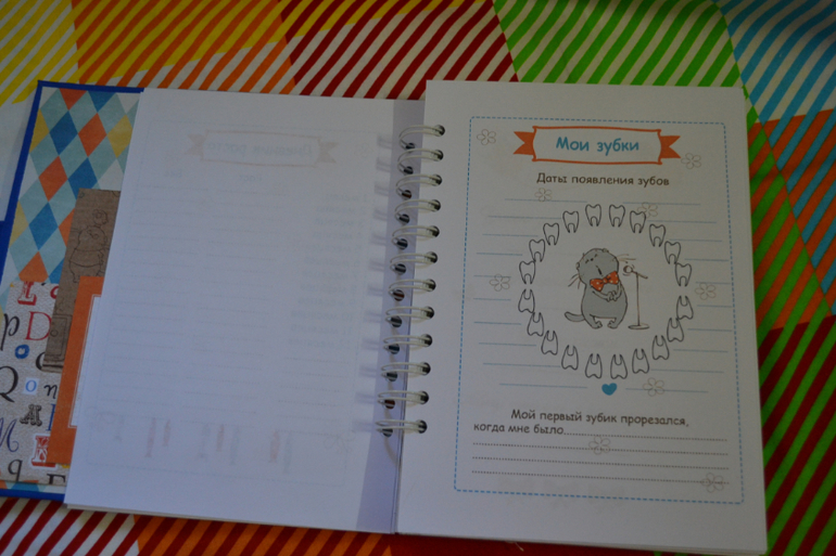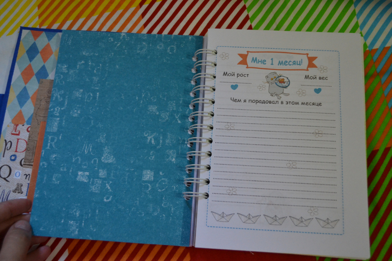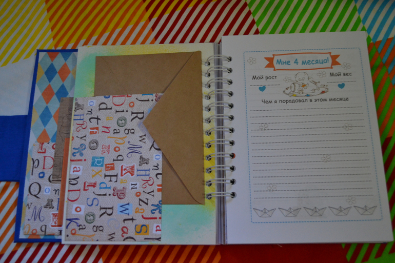 12 разделителей- на них можно разместить фото малыша+конвертики для мелочей- странички с графиками и анкетные данные!
