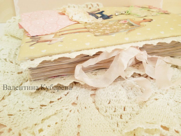 БлокнотыПривет всем! Хочу показать вам мой наконец материализовавшийся блокнотик) Дело в том, что идею его создания я обдумывал давно и долго. Но часто бывает, что в итоге сделала совсем по-другому) Сначала хотела специальные тематические странички для рукодельницы напечатать, но когда сделала эту обложку, то поняла, что туда отлично подойдут тонированные странички) Быстренько их сделала . Для меня это спасение: принтер мой почти издох, а блок надо делать. Вот и выкрутилась) Результатом довольна, блокнот нежный, мягкий, немного винтажный. Весь такой воздушный и легкий. На форзаце уголок с конвертом для важных записок, внутри разделители из Тильды. Вот собственно и он: