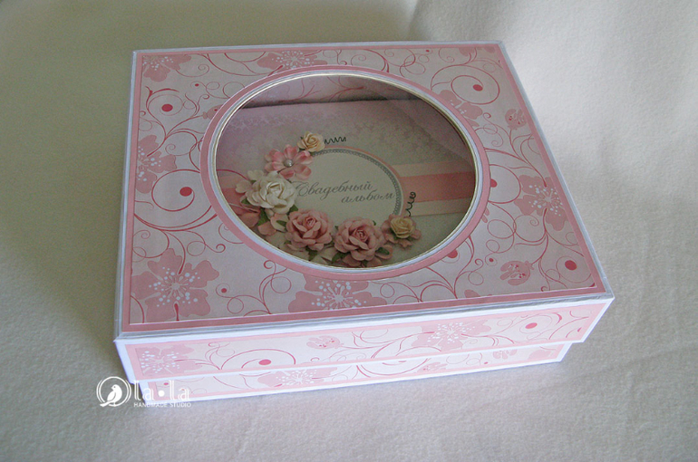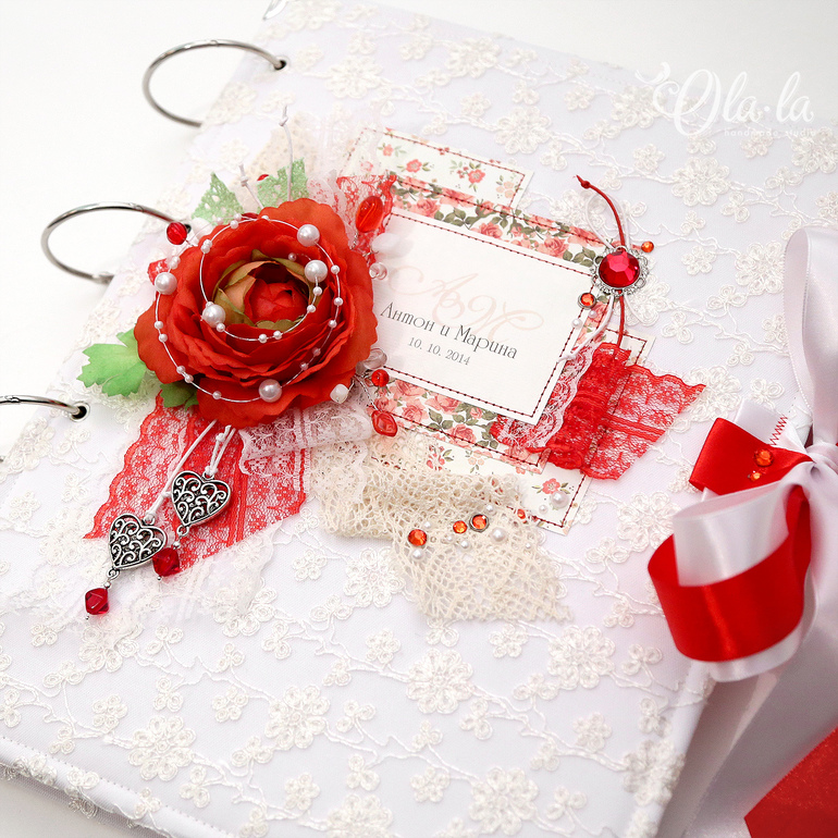 Захотелось попробовать все сразу: игрушки, шкатулки, альбомы, открытки и т.п. И так получилось, что моей первой работой стал свадебный альбом, подарок моей подруге на свадьбу... Как я его делала, ох и "намучилась" я с ним...)) Обтянуть обложку поверх поролона атласом, эксперименты с клеями, первые "робкие" закупки в интернет-магазинах, поиск информации, куча новых терминов... но в итоге вот что у меня получилось... Я была